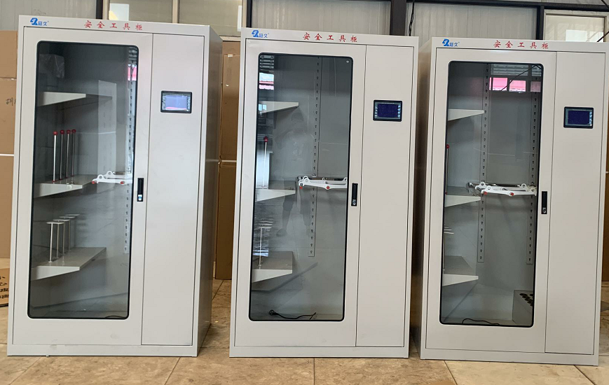 在國內(nèi)電力行業(yè)中,廣泛使用絕緣工具進(jìn)行帶電作業(yè)或操作。受潮后的絕緣工具絕緣性能下降,嚴(yán)格危及檢修人員的生命安全?,F(xiàn)有的措施是采用木質(zhì)或鐵質(zhì)的柜體或絕緣工具庫存房進(jìn)行絕緣工具的存放或保管。木質(zhì)、鐵質(zhì)工具柜都不具備長期恒定的防潮作用,極易受潮,但這種庫房投資大,能耗高,干燥過程緩慢,特別是絕緣工具少的單位,也沒有必要建立絕緣工具庫房。我公司生產(chǎn)的產(chǎn)品智能安全工具柜,有效地解決了上述問題,得到了廣大用戶的歡迎。智能安全工具柜由優(yōu)質(zhì)鋼板整體卷壓成型,整體造型采用現(xiàn)代工業(yè)控制屏柜的風(fēng)格,表面噴塑,密封性達(dá)到EN60529/IEC529標(biāo)準(zhǔn)的防護(hù)等級-IP5級;正面為玻璃觀察門,觀察方便,并裝有門控照明燈,門右側(cè)裝有顯示和控制操作面板(ADZ-3/4型),實(shí)時(shí)顯示柜內(nèi)和柜外的溫度、濕度和設(shè)備運(yùn)行狀態(tài)。柜底安裝有四個(gè)萬向輪和定位螺桿;柜頂裝有四個(gè)吊杯,方便運(yùn)輸。我公司生產(chǎn)的智能安全工具柜,采用大屏幕液晶數(shù)字顯示,能準(zhǔn)確地提供你所需要的信息,以及柜內(nèi)工具的狀況及數(shù)量。我公司為方便廣大客戶,滿足客戶的不同需求,所有安全工具柜均可按照客戶要放置的物品型號(hào)、數(shù)量、種類來為您量身定制適合您的安全工具柜。歡迎來電咨詢智能型安全工具柜!智能型安全工具柜是河北三棵松科技有限公司新一代的工具柜產(chǎn)品,說到特點(diǎn)的話。對比之前的安全柜具有運(yùn)行更加穩(wěn)定、除濕溫升更小、顯示更精確、操作更加簡便、密封性更佳。配電房安全工具柜_安全工具箱生產(chǎn)廠家