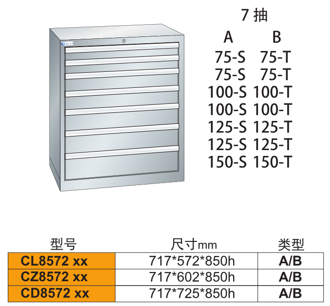 工具柜工具柜C-8572介紹:工具柜適用于工具、刀具、零部件在生產(chǎn)現(xiàn)場中的定置管理,7抽抽屜式設(shè)計,使你的物品存取工作真正做到準(zhǔn)時、準(zhǔn)確、卓效、低耗。