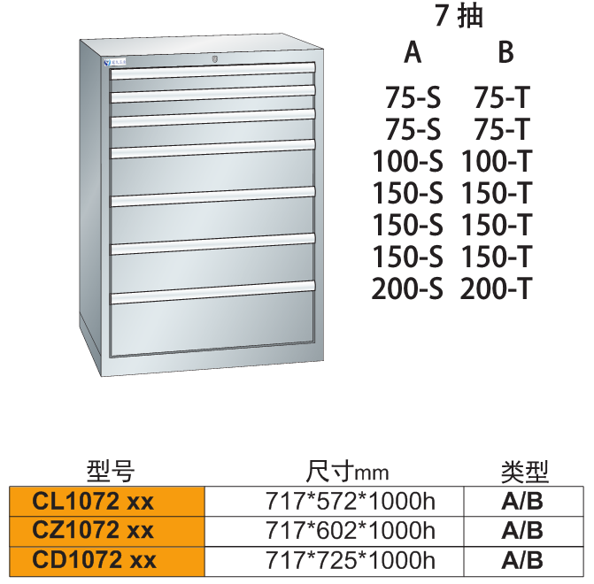 工具柜C1072介紹:工具柜適用于工具、刀具、零部件在生產(chǎn)現(xiàn)場中的定置管理,7抽抽屜式設計,使你的物品存取工作真正做到準時、準確、卓效、低耗。