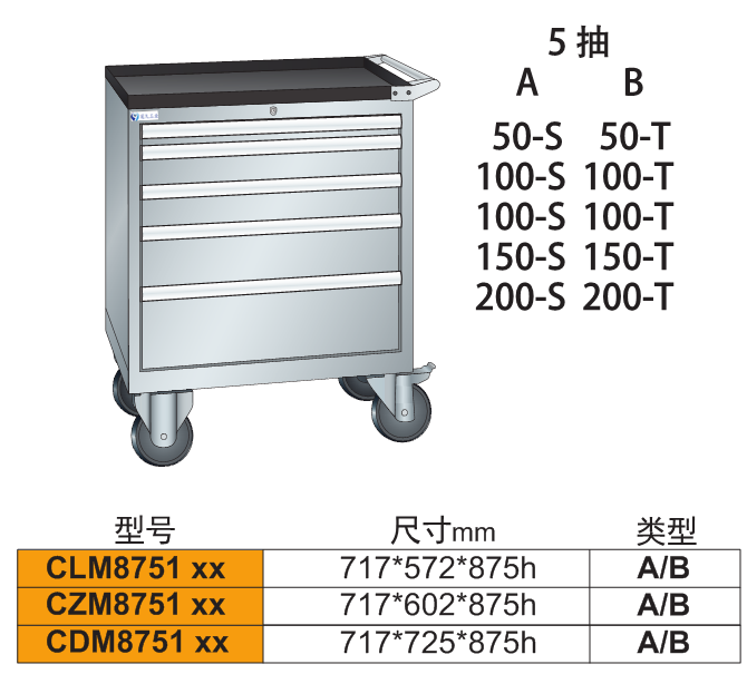 3、外型尺寸的高度:重型工具車(chē)為所選用的工具柜的高度加上140mm;