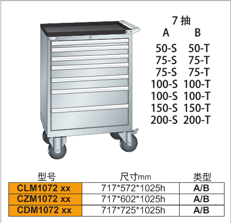 2、由各種型號的工具柜增加頂柜和腳輪等移動部件組成。