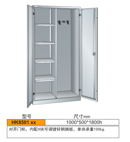 4、標(biāo)配柜體內(nèi)每層層板載重100KG。(如需加重可定制)