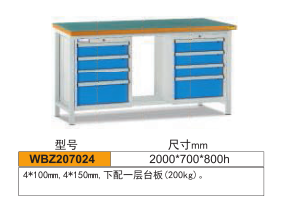 工作臺介紹: 工作臺采用優(yōu)質(zhì)冷扎板精工制作而成,堅固的工作桌框架,牢固平穩(wěn),可使工作桌承重1000kg;多種工作桌面選擇,可配合不工使用的要求; 工具吊柜(箱),側柜(箱)燈架,調(diào)節(jié)腳杯,外形美觀;層板,抽屜質(zhì)量上乘,承重大,抽屜內(nèi)可根據(jù)需要任意分隔;節(jié)約空間,適用性強